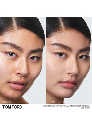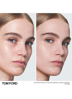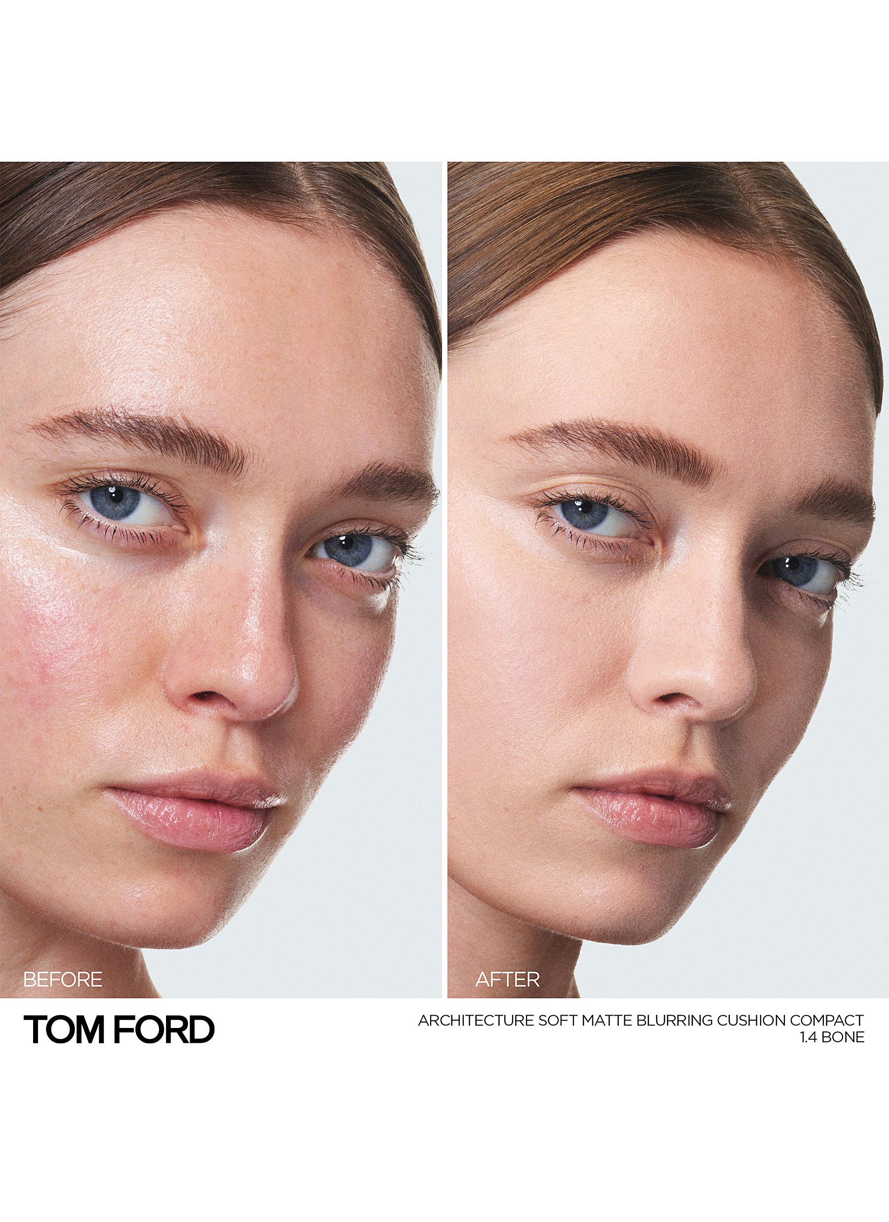 Discover the luxurious touch of TOM FORD’s Architecture Soft Matte Blurring Cushion Foundation, designed to deliver a flawless yet natural finish. Infused with ultra-fine pigments, this cushion foundation smooths skin texture, minimizes pores, and controls shine for a soft-matte, photo-ready complexion. With SPF 40 PA+++, it shields your skin from daily UV exposure while keeping it fresh and radiant all day.