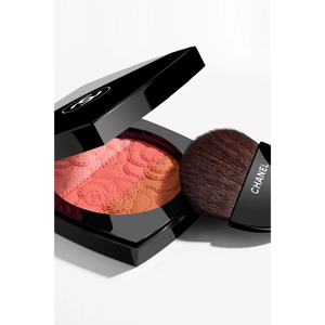 The CAMÉLIA FUTURA blush trio, embossed with camellia motifs, draws its inspiration from Gabrielle Chanel's favorite flower and her love of couture.